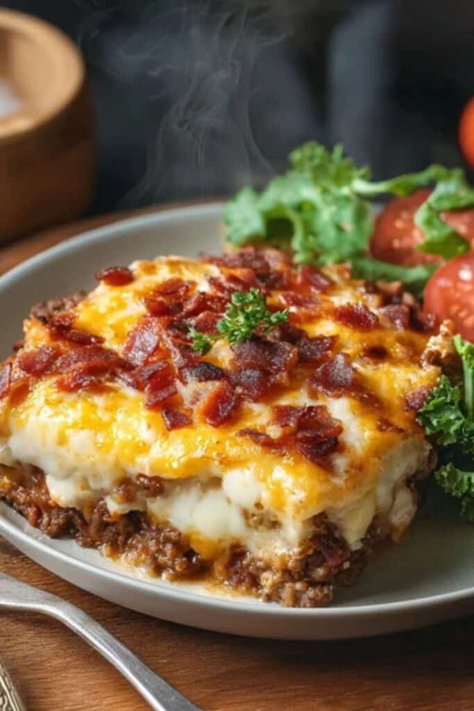 The magic of this casserole lies in its layers. The beef gives it richness, the bacon adds crunch, and the cheese binds everything together. Each bite feels like a comforting hug — familiar, satisfying, and completely crave-worthy.