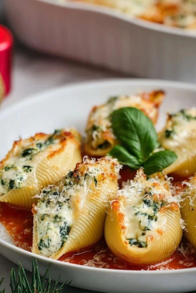 These shells blend rich cheese filling with seasonal herbs and festive colors, making them both flavorful and beautiful for holiday dining.