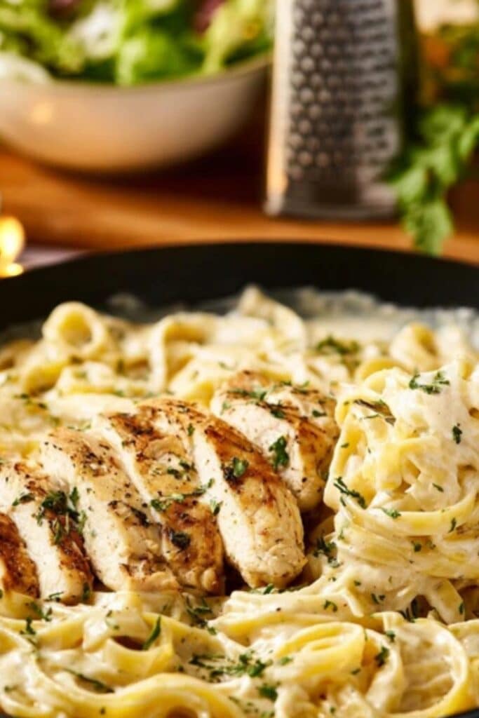 If you’ve ever sworn off Chicken Fettuccine Alfredo because it turned oily or clumpy, I want you to try it once more—with the gentle heat rule and that reserved pasta water trick. Keep the sauce at a quiet simmer, add Parmesan gradually, then toss the pasta right in the pan until it clings like it’s supposed to. Make it this way once, and you’ll stop ordering it out… because your version will taste richer, fresher, and exactly how you want it.