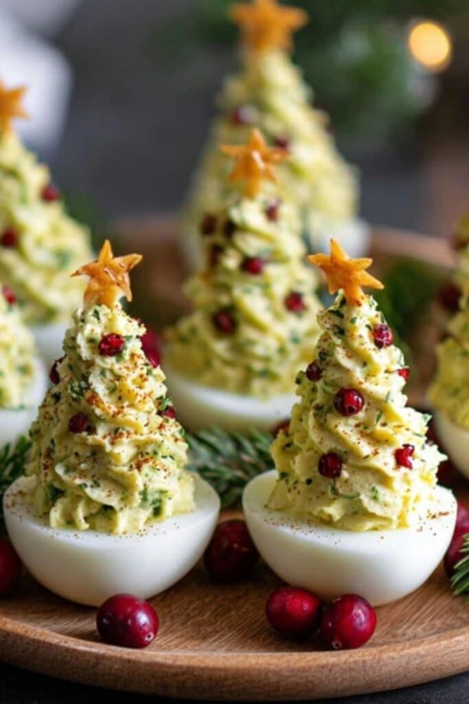 They’re also incredibly versatile. You can decorate them with diced red peppers for ornaments, use parsley for branches, or even mix spinach puree into the yolk filling for that perfect evergreen color. And if you’re already planning other festive recipes like the Christmas Cranberry Pinwheels Recipe or the Pesto Puff Pastry Christmas Tree, these deviled eggs tie in beautifully with your holiday table theme.