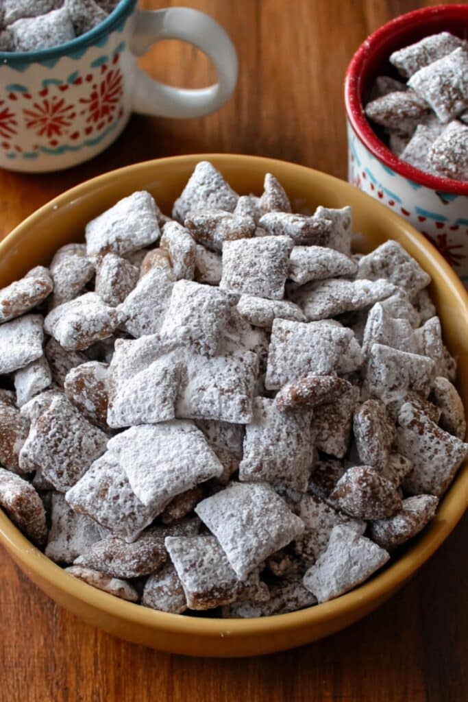 You can go beyond snacking — use your Easy Puppy Chow Recipe as a topping for ice cream or yogurt. For party favors, package it in cellophane bags tied with ribbons. It’s also fantastic on dessert tables paired with Sweet Churro Chex Mix or Easy Homemade Chex Mix.