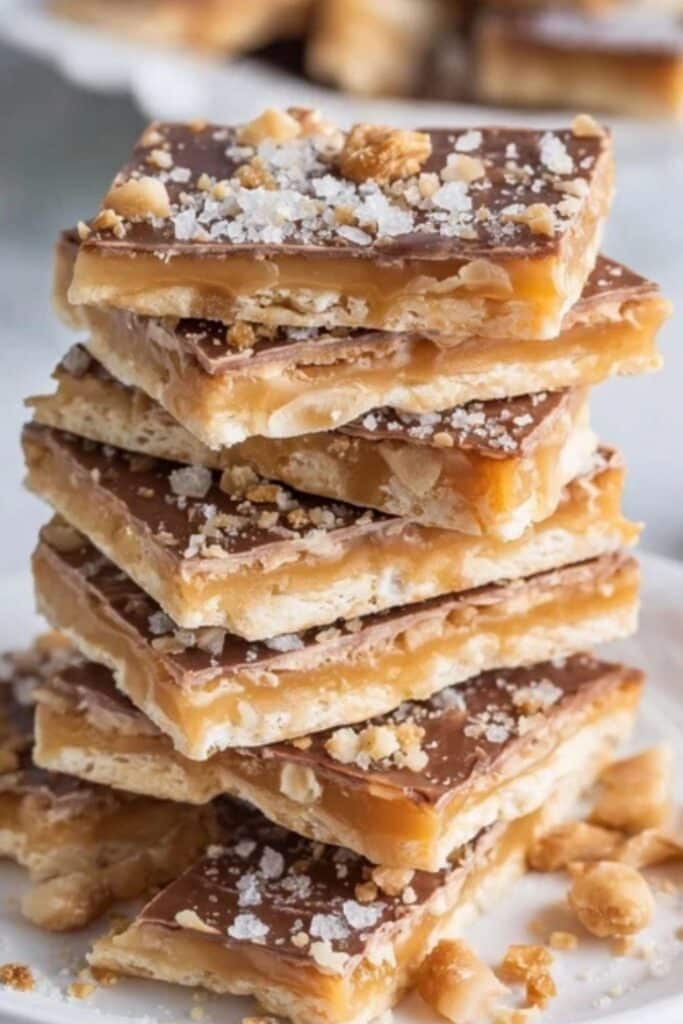 While similar in taste, Easy Saltine Candy uses saltine crackers as the base, giving it a lighter texture and saltier edge compared to traditional toffee.
