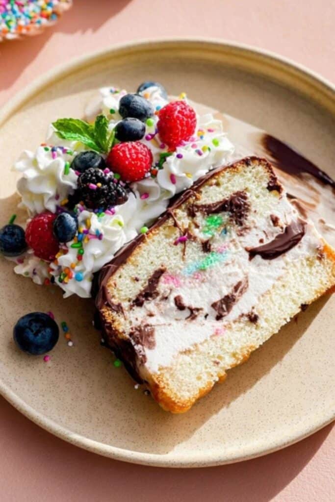 Once your ice cream loaf cake is fully frozen (ideally overnight), it’s time for the fun part—decorating. Whipped cream, sprinkles, chocolate drizzle, crushed candies, or fresh berries make for eye-catching toppings. You can even coat the loaf in a shell of melted chocolate that hardens into a crackly crust.