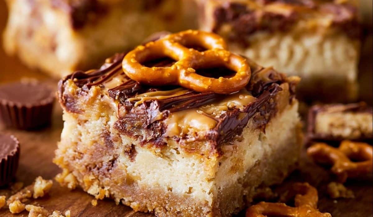 It’s the perfect contrast that makes Peanut Butter Cup Pretzel Cheesecake Bars so special. The buttery pretzel crust holds everything together with its salty crunch. The cheesecake filling? Smooth, rich, and lightly sweet. Then there’s the top—melty, chopped peanut butter cups that seal the deal. It’s not just about flavor—it’s about texture and balance.