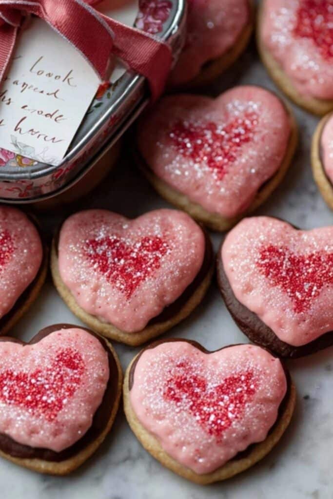 Don’t just bake—present them beautifully. Stack them in cellophane bags tied with satin ribbon or layer them in heart-shaped tins. They pair wonderfully with homemade hot fudge sauce for a dipping gift set or serve them alongside red velvet cheesecake swirl brownies on a dessert tray. Sparkle Sweetheart Cookies become more than a recipe—they’re part of a moment.