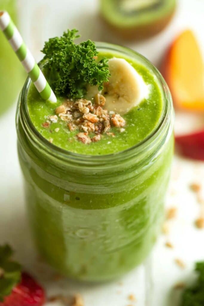 A classic version includes kale or spinach, banana, pineapple, mango, and coconut water. Add chia seeds, flaxseeds, or plant-based protein for an extra nutrient boost.